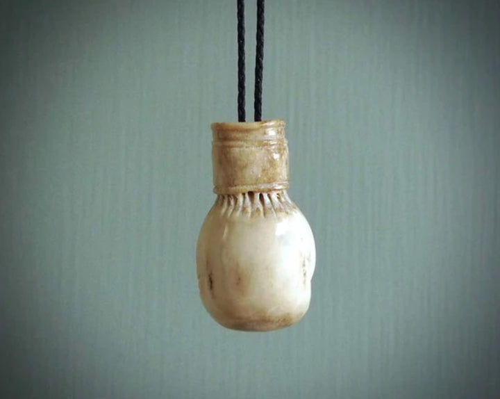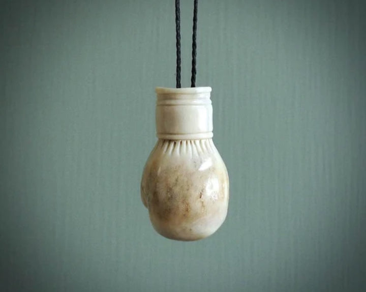 Handgeschnitzte Boxhandschuhe aus Hirschgeweih.