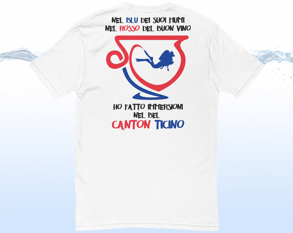 Sia che tu sia un subacqueo NOSTRANO, oppure sei venuto apposta per immergerti nella cultura e nei fiumi del nostro bel cantone ecco a te la maglietta dei tuoi sogni!